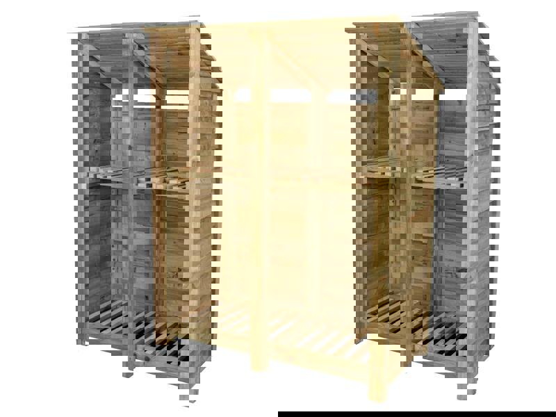 Arbor Garden Solutions Wooden Log Store (Roof Sloping Back) with Shelf W-146cm, H-126cm or 180cm, D-88cm