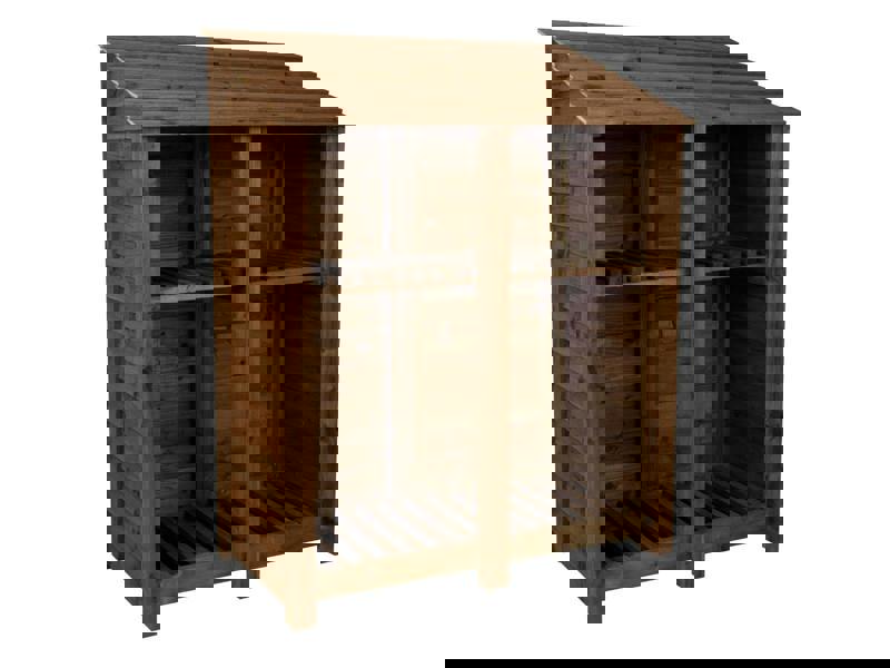 Arbor Garden Solutions Wooden Log Store with Shelf W-146cm, H-126cm or 180cm, D-88cm - Brown Finish
