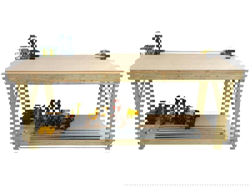 The Wooden MDF Top Workbench from Arbor Garden Solutions is a robust and versatile addition to any workshop or garage. Handcrafted in the UK, this workbench features a frame constructed from construction-grade CLS C16 kiln-dried timber, ensuring durability and stability for various projects. The tabletop and optional shelf are made from 18mm MDF ply sheets, providing a smooth and reliable surface for your tasks.