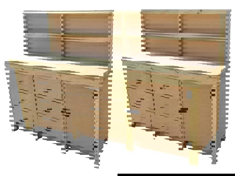 Enhance your workspace with our Wooden MDF Tool Cabinet Workbench with a Lockable Cupboard (V3). Handcrafted in the UK, this robust workbench features a durable 18mm MDF work surface and a sturdy frame made from construction-grade CLS C16 kiln-dried timber. Available in lengths from 4ft to 8ft, it offers up to six spacious drawers and a secure lockable cupboard, providing ample storage for your tools and materials. It combines functionality with superior craftsmanship and is designed for easy on-site assembly with just a screwdriver.