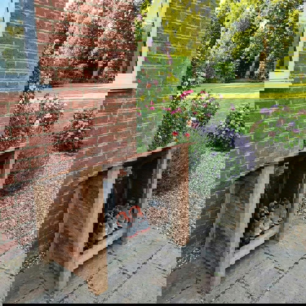 It has a generous capacity for storing everything from shoes and wellies to logs.