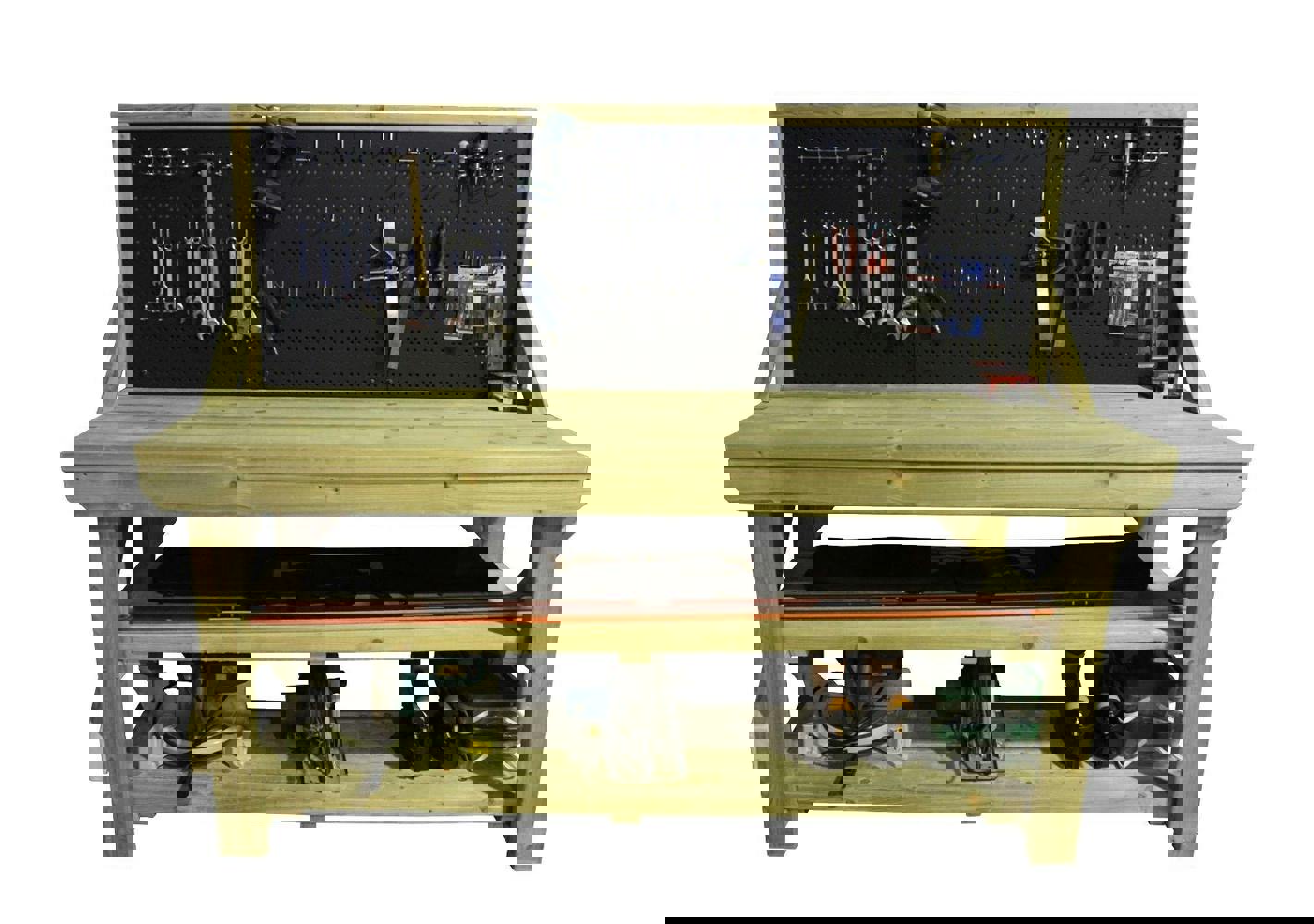 Introducing our Wooden Workbench with Peg Board, a robust and versatile addition to any workshop or garage. Crafted from high-quality timber, this workbench offers exceptional durability and resistance to decay, insects, and moisture, ensuring longevity in various environments.