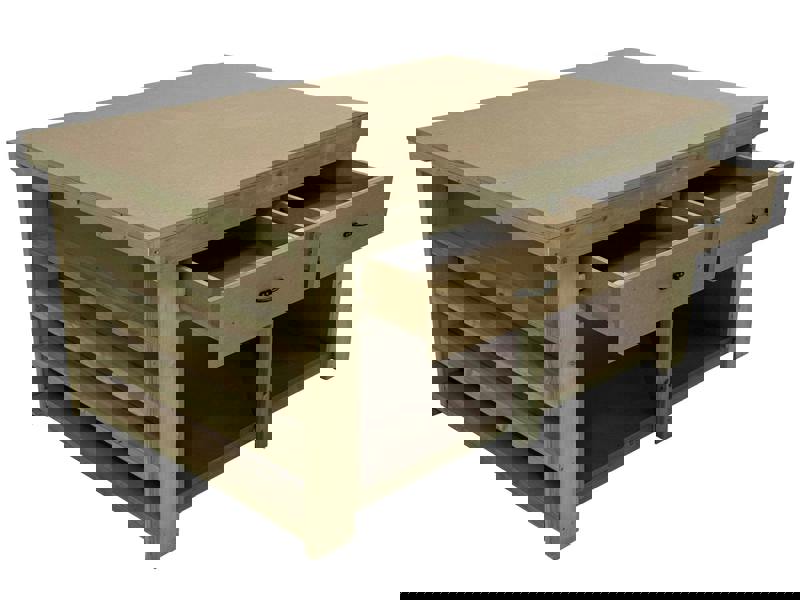 Introducing our Wooden MDF Top Workbench with Extra Shelving, carefully designed to improve efficiency and organisation in any workspace. Handcrafted in the UK, this robust workbench features a construction-grade CLS C16 pressure-treated timber frame and a smooth 18mm MDF ply sheet top, delivering a durable and dependable surface for a wide range of projects.
