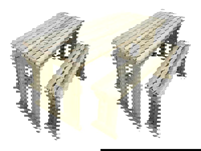 Please note that the benches are 30cm shorter than the overall table length to allow them to slide neatly underneath for convenient space-saving storage.