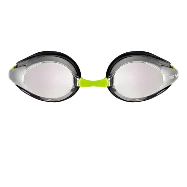 The Arena Childrens/Kids Tracks Swimming Goggles are designed for competition use, combining a face-contouring fit with a reflective, mirrored hard lens. Finished in silver, black and fluorescent lime, they feature a contrast design for a standout look in the pool.