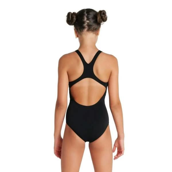The Girls Team Swim Pro Solid Swimsuit from Arena in classic black, is a durable, long-lasting, and high chlorine-resistant swimsuit made from eco-friendly MaxLife Eco fabric. The open back maximises freedom of movement while the wide straps and medium-cut leg provide good coverage and superior comfort. Part of the Arena Team Line Collection, this swimsuit is perfect for regular and competitive young swimmers.