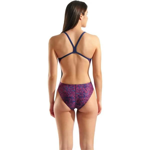 The Snakeskin Challenge Swimsuit from Arena showcases an allover navy and purple snakeskin design, paired with navy shoulder straps. Its sleek cut and striking pattern support powerful, precise swimming. Made with MaxLife Eco fabric, it ensures excellent chlorine resistance, preserving fit and comfort through regular use. This suit merges Arena’s performance swimwear expertise with sustainable materials, incorporating a minimum of 50% recycled polyester. Additionally, it offers 50+ UV protection, making it a durable and dependable option for rigorous training.