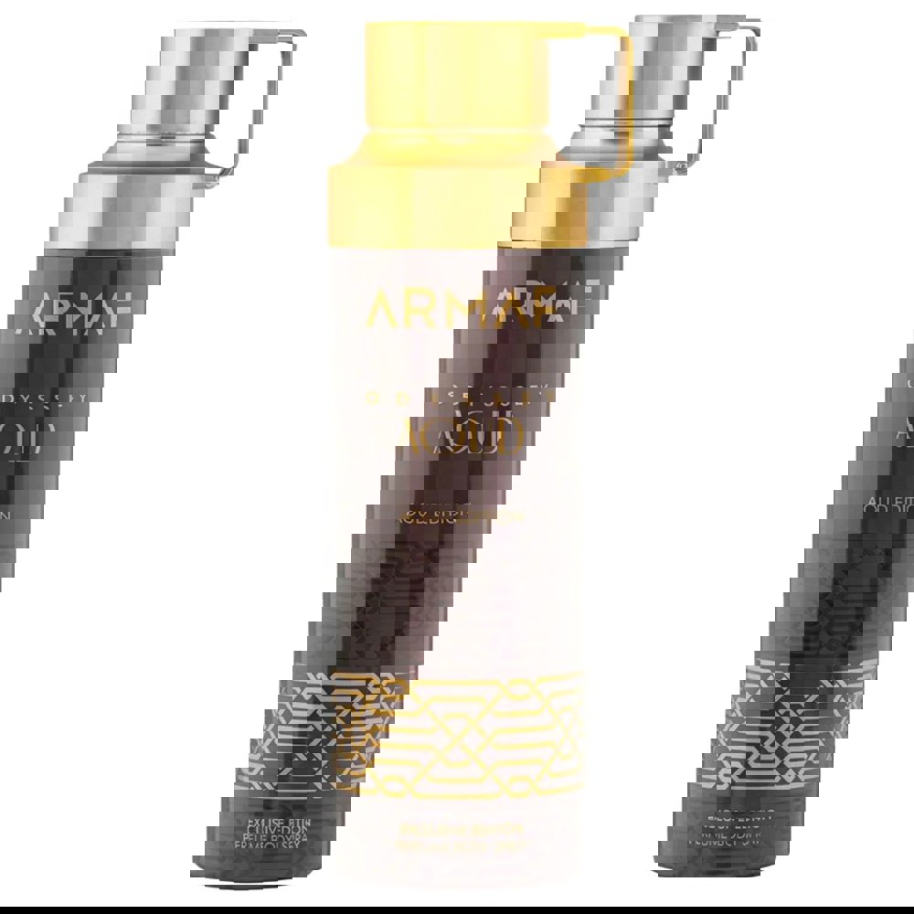 Discover ARMAF Odyssey Aoud Perfumed Body Spray 200ml; a captivating blend of Lavender & Saffron, leading to elegant middle notes of Oud & Woody Notes, leading to elegant middle notes of Patchouli, Ambroxan & Musk
