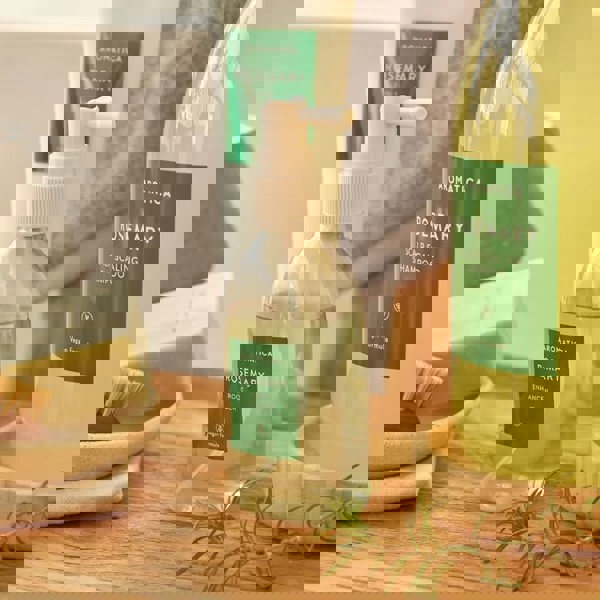 Aromatica Rosemary Root Enhancer is enriched with Vitamin B and Biotin for fuller hair.