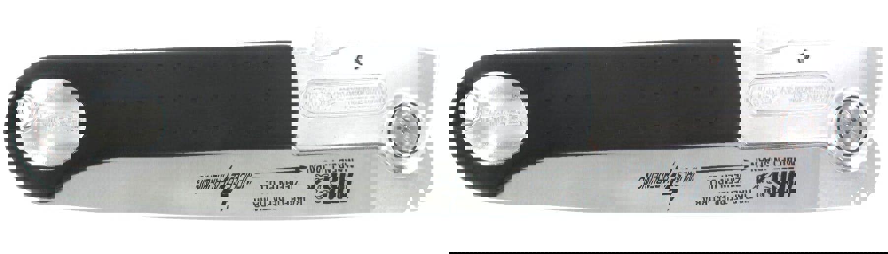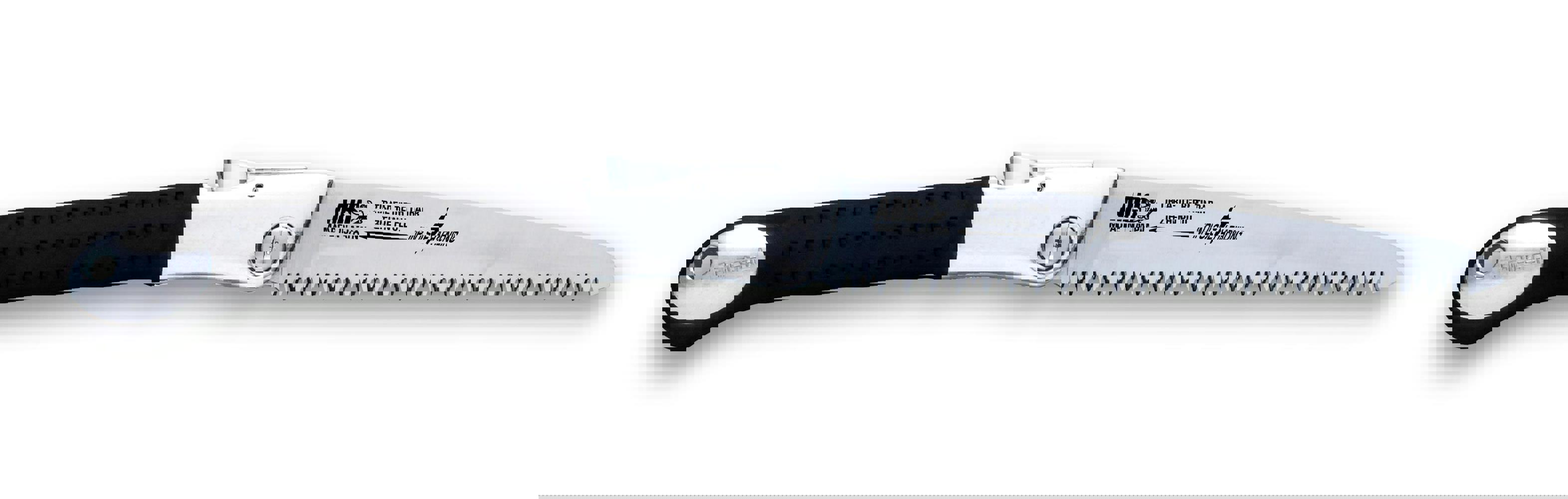 The PM-21 is built for longevity. The high-carbon steel blade undergoes impulse hardening, a thermal treatment that makes the teeth incredibly hard while maintaining the flexibility of the blade body. Combined with hard-chrome plating, this saw stays sharp 4 to 5 times longer than standard steel saws and remains completely resistant to rust and sap. When the job is done, the blade folds securely into the rubberised light-metal handle, ensuring the razor-sharp teeth are shielded during transport.