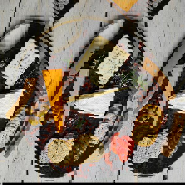 This striking finish makes the piece a natural centrepiece. The surface is 100% food safe, and the board's large size makes it ideal for serving cheeses, antipasti, desserts and lots more. With its brass-coloured metal handle, it's easy to carry from kitchen to table. Set it alongside other platters from the Artesà collection for a trendy look. It also works well with BarCraft's tortoise shell-patterned glassware and Mikasa's gold-coloured faux-tortoise shell cutlery set.