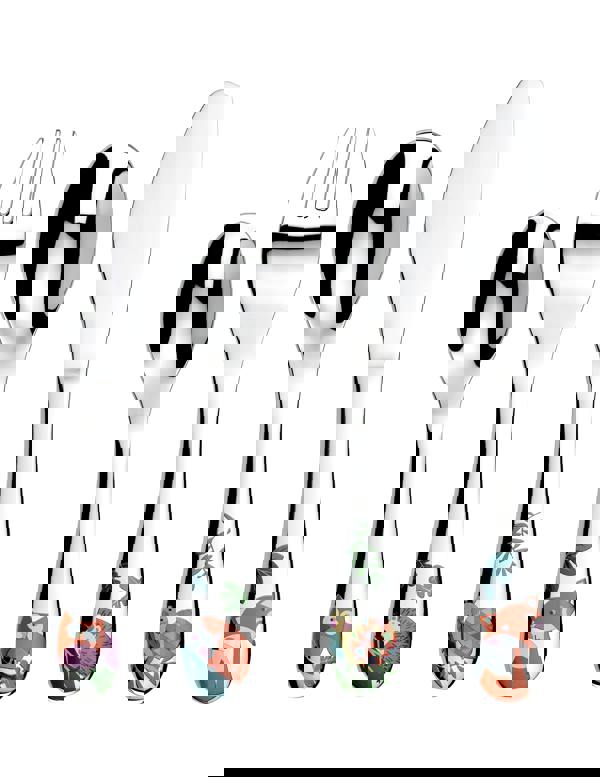 'Woodland' design by Arthur Price - 4 piece children's cutlery set comprising of child's knife, child's fork, dessert spoon and tea spoon, perfect for small hands to hold. Made from the finest grade 18/10 stainless steel, mirror finish.