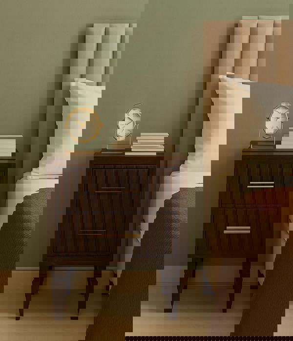 The Belmont 2 Drawer Nightstand offers a bold blend of texture and tone, handcrafted from 100% solid mango wood in a rich Velvet Mocha finish. Its vertically fluted drawer fronts and turned legs create a stately silhouette, while the brass-toned handles add a refined contrast. With two spacious drawers, this piece brings both elegance and practicality to your bedroom, making it a timeless addition to modern and traditional interiors alike.
