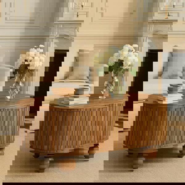 This beautiful Soba Coffee Table has been constructed from 100% solid mango wood and has a lovely natural oak-ish finish. It features a lid-up design for discreet storage, as well as 4 sturdy ball feet for a modern touch. Let this piece create the perfect contemporary look in your living room.