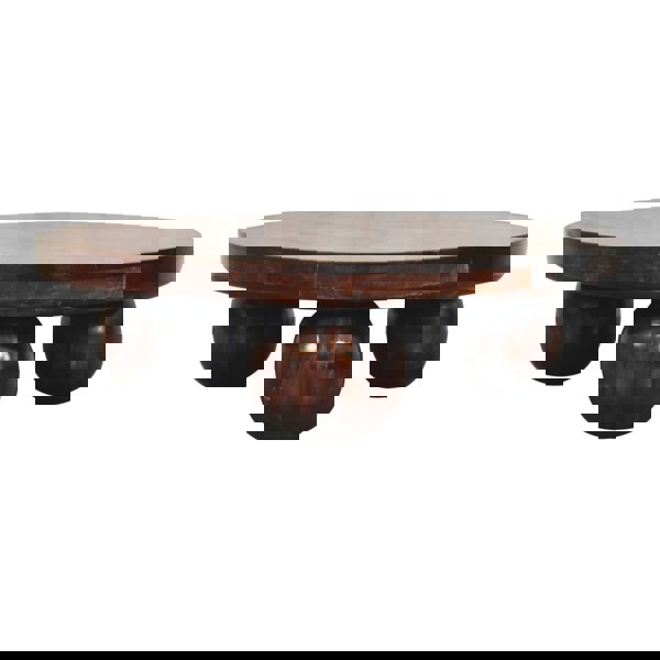 IN3818 Crafted from 100% solid mango wood with a warm California walnut finish, this coffee table features distinctive ball feet for sturdy support. Its rich hue and intricate grain patterns add timeless elegance, making it a durable and stylish centerpiece that complements a variety of decor styles.