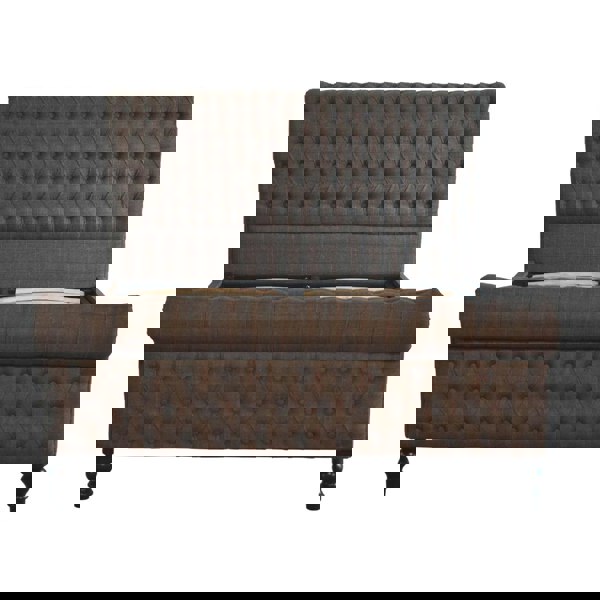 The headboard and footboard of the bed are upholstered in a multi tweed fabric, a unique and eye-catching design that adds texture and depth to the piece. The tweed fabric is a blend of various textures and colours, creating a visual interest that is both classic and contemporary. The exquisite curves of the headboard and footboard are accentuated by deep button design, adding a classic and timeless feel to the bed.