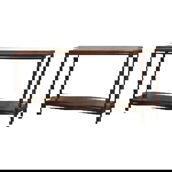 Timeless in form and versatile in function, this bench is handcrafted from 100% Solid Mango Wood in a rich chestnut finish. Its sleek silhouette is complemented by rounded edges and smooth curves, offering a subtle nod to classic design. The lower shelf provides additional space for storage or display, making it ideal for entryways, hallways, or living areas. Whether styled with décor or used to organize daily essentials, this piece blends enduring craftsmanship with understated elegance for a refined and practical presence in any interior.