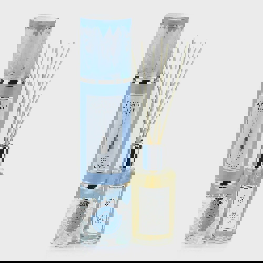 Fresh Linen Reed Diffuser is a delightfully fresh, clean and uplifting fragrance that evokes the scent of crisp white sheets billowing in a light breeze with subtle notes of aloe, frangipani, lavender and citrus.