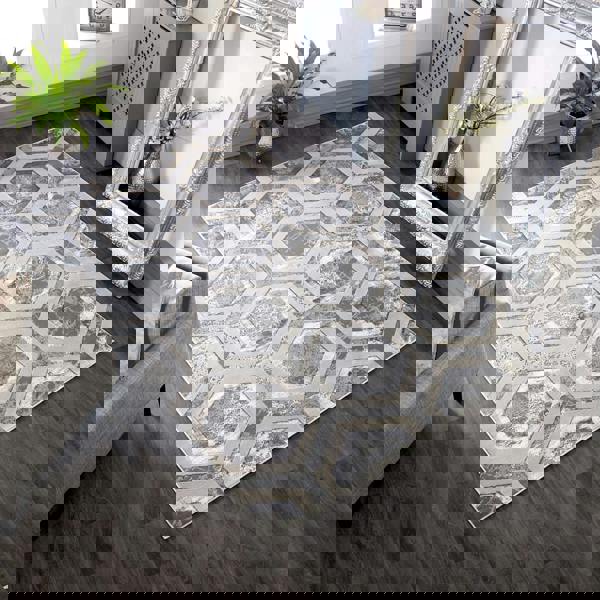 Presented in a choice of abstract metallic designs, the Aurora rugs are machine-woven from high density, durable fibres. The result is a collection that’s both sophisticated and functional.