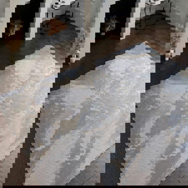 Presented in a choice of abstract metallic designs, the Aurora rugs are machine-woven from high density, durable fibres. The result is a collection that’s both sophisticated and functional.