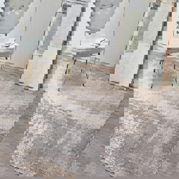 Presented in a choice of abstract metallic designs, the Aurora rugs are machine-woven from high density, durable fibres. The result is a collection that’s both sophisticated and functional.