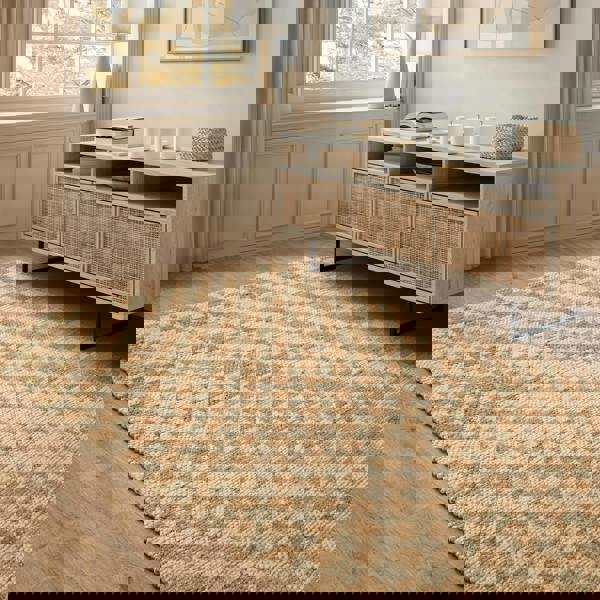 Naturi reimagines classic jute with a fresh design twist, featuring a checkerboard pattern.