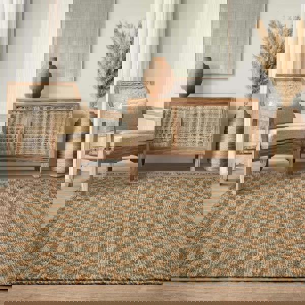 Naturi reimagines classic jute with a fresh design twist, featuring a checkerboard pattern.