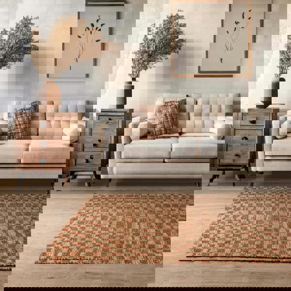 Naturi reimagines classic jute with a fresh design twist, featuring a checkerboard pattern.