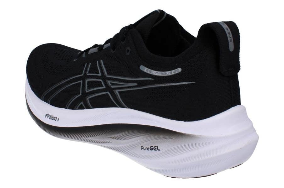 Built for everyday road miles, the ASICS Gel-Nimbus 26 men’s running trainers deliver a streamlined look in Black/Graphite Grey. This pair comes in style code 1011B794-001 and is finished with ASICS branding for a clean, modern profile that works for training runs and regular rotation.
