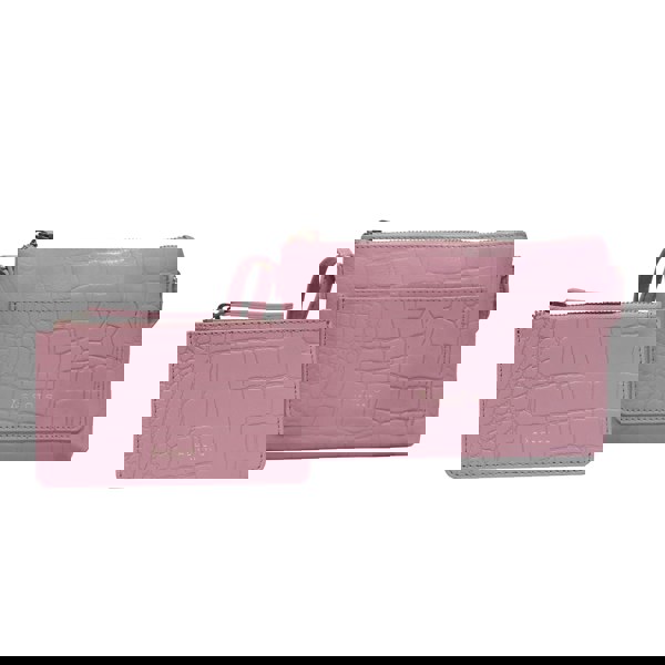The Assots 'Aria' pink leather crossbody bag is beautifully handcrafted from premium vintage croc polished real leather. Multi-functional, stylish and versatile, this everyday bag is finished into a unique design with the additional zip top wallet purse sliding into the front pocket of the crossbody sling bag. Ideal for a casual day out, this luxury leather handbag is a must-have addition to your collection of bags.