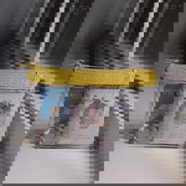 The Dinah Transparent Zip Top Yellow Coin Purse is a unique handcrafted leather accessory that combines practicality with a fashionable twist. Its transparent design is sure to draw attention, while its compact size makes it an ideal accessory for any occasion.