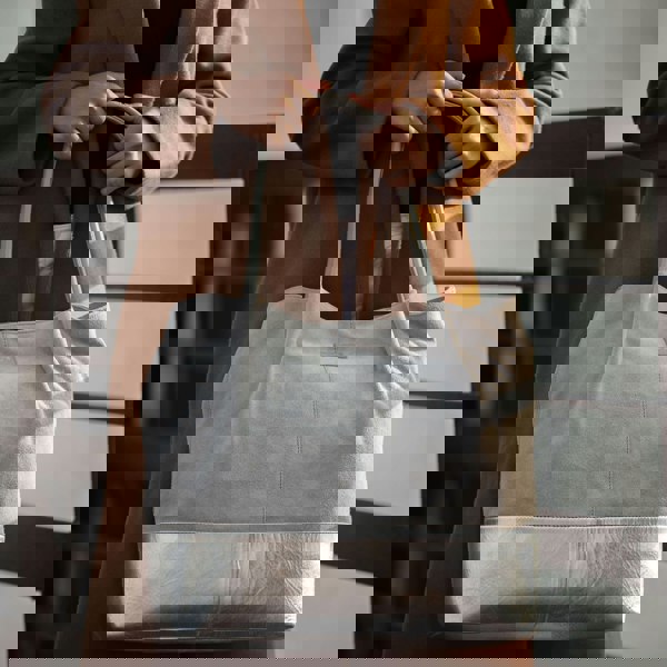 The oversized 'Donna' real leather shopper bag is beautifully handcrafted from fine napped suede leather with metallic silver leather embellishment. Soft and thick leather shoulder handles for a comfortable carry, this designer shoulder bag is ideal for everyday use accommodating all your essentials with ease.