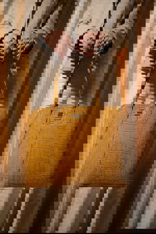 The designer 'Eva' tote bag in ice grey real croc leather is a beautiful timeless design chosen for its lightweight characteristic. Unlined and spacious interiors ensure that you don't run out of space whether you're commuting. Add a touch of sophistication to all your outfits with the 'Eva' tote bag, a must have addition to your collection of handbags.