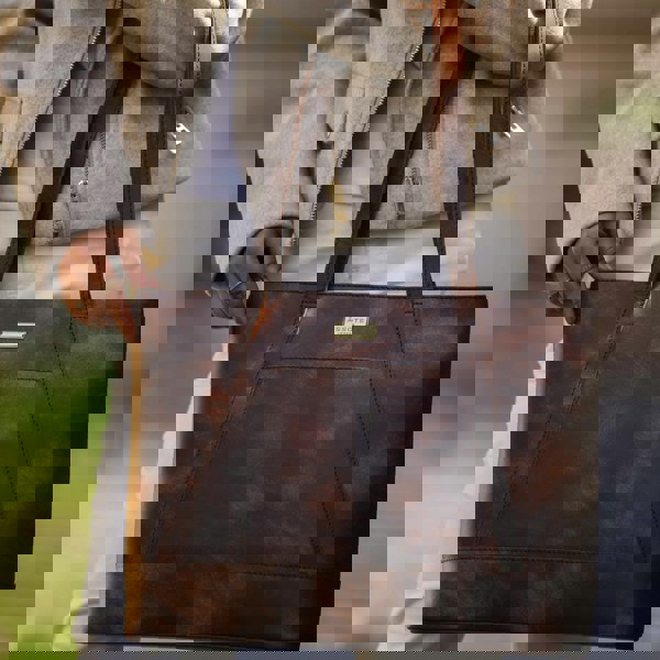 Indulge in luxury and sophistication with the 'EVELYN' tote bag. Made from real leather, this beautifully crafted bag offers both style and function. With a zip top closure, multiple slip pockets, and credit card slots, it's perfect for staying organised on the go. The fully lined interior and long shoulder handles ensure both comfort and convenience.
