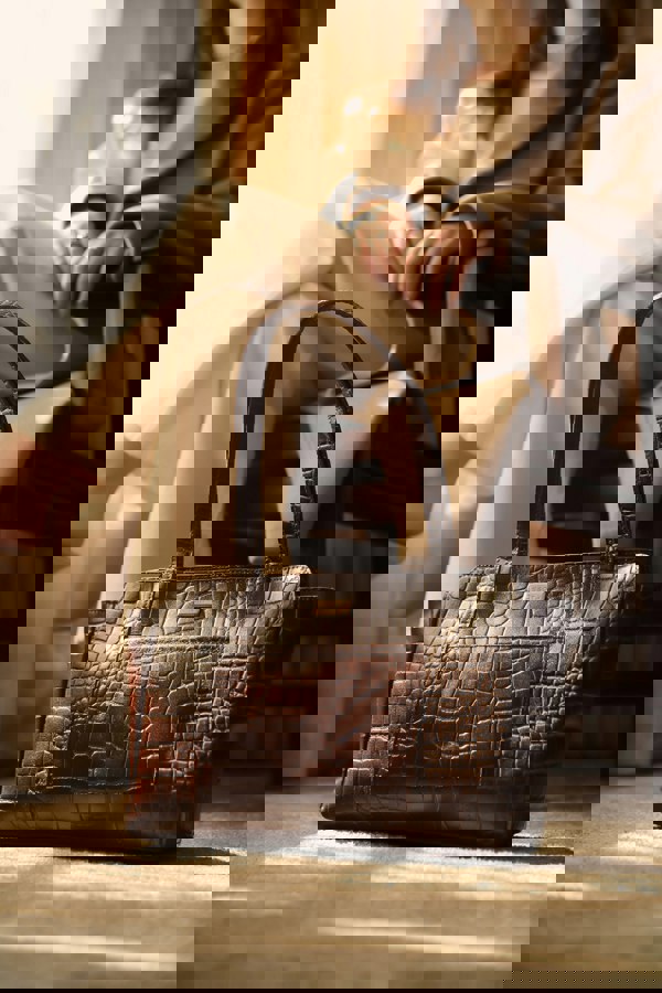 The practical and timeless 'Judith' real leather shoulder bag is beautifully handcrafted from vintage real croc polished finish leather. A classic boat design featuring multiple zip and slip pockets to organise all your essentials when you're out and about. Ideal for everyday use, this genuine leather piece is a must-have addition to your collection of handbags.