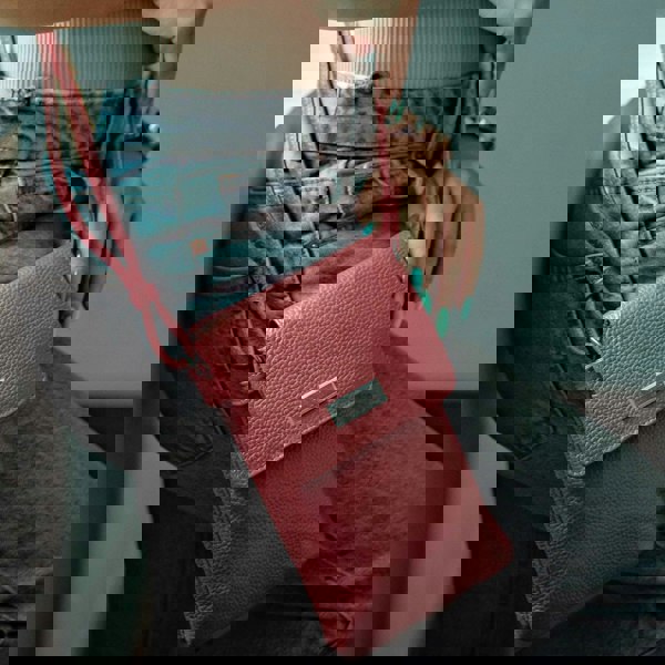 The Assots 'Maria' mobile crossbody bag is a classic flap over design beautifully handcrafted from the finest pebble grain real leather. Featuring two main compartments, front slip pocket and back zip pocket, this multi-functional phone bag easily accommodates all your essentials when you're out and about. Ideal for everyday use, 'Maria' is the perfect hands-free travel accessory.