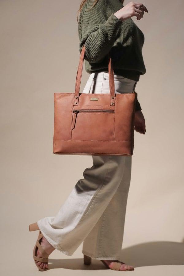 Experience luxury and sophistication with our 'MILLIE' Tan Walnut Real Leather Designer Tote Bag. Handcrafted with distressed vintage leather, this exclusive tote exudes elegance. With multiple pockets and long shoulder handles, it offers both convenience and style. Elevate your accessory game with this premium piece.