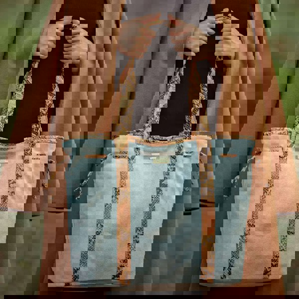 The Assots 'Polly' oversized shopper bag is beautifully handcrafted with fine napped real suede leather and the trendy python snake textured leather. Featuring long rolled tubular shoulder handles, this designer tote bag effortlessly adds a touch of sophistication to all your everyday outfits when you're out and about.