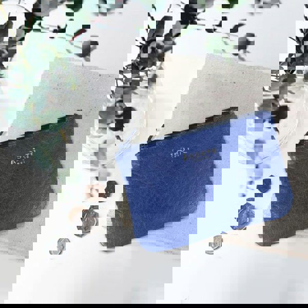 Assots London 'Poppy' Blue Iris Full Grain Leather Zip Top Coin Purse