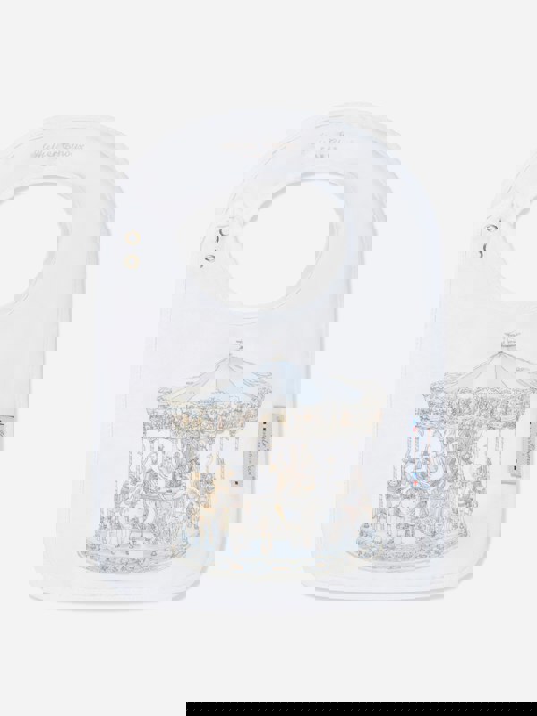 Designed to add a smart touch at mealtimes, this satin bib is described as offering comfort for everyday use, while the Carousel motif gives it a standout, fashion-led feel.