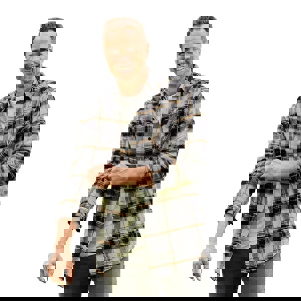 Cut from 100% cotton flannel with a soft-touch, yarn-dyed finish, this checked shirt brings a classic look to everyday dressing. The design combines a white, black and ochre check with contrast detailing for a defined finish.