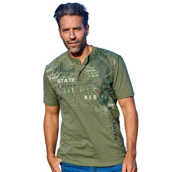 This pack of two men’s Henley T-shirts is made from 100% cotton with a soft-touch fabric finish. Each piece is printed with an eagle and text design, offering a clean, casual look for everyday wear.