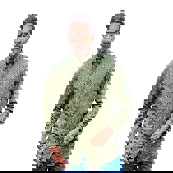 Cut from 100% cotton poplin, this long-sleeved shirt comes in khaki green with an all-over microprint. It fastens with a button-down front and has a buttoned turn-down collar for a neat finish. A single chest pocket adds a practical detail, while the rounded hem keeps the silhouette classic.