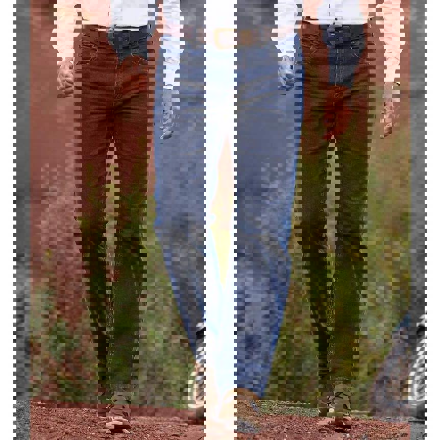 A straight leg cut keeps the silhouette classic, while the button fastening and zip fly provide a secure closure. Storage is arranged across five pockets, including side pockets, a coin pocket and back patch pockets, finished with rivet detailing.