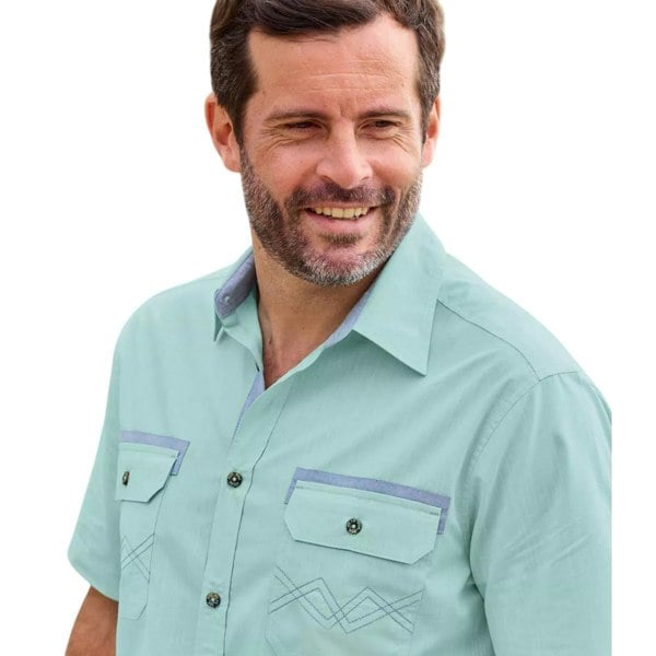 Cut from 100% cotton slub fabric, this men’s shirt offers a lightweight feel with a 110gsm handle. The turquoise design is finished with embroidered detailing and a classic turn down collar for a clean, casual look.