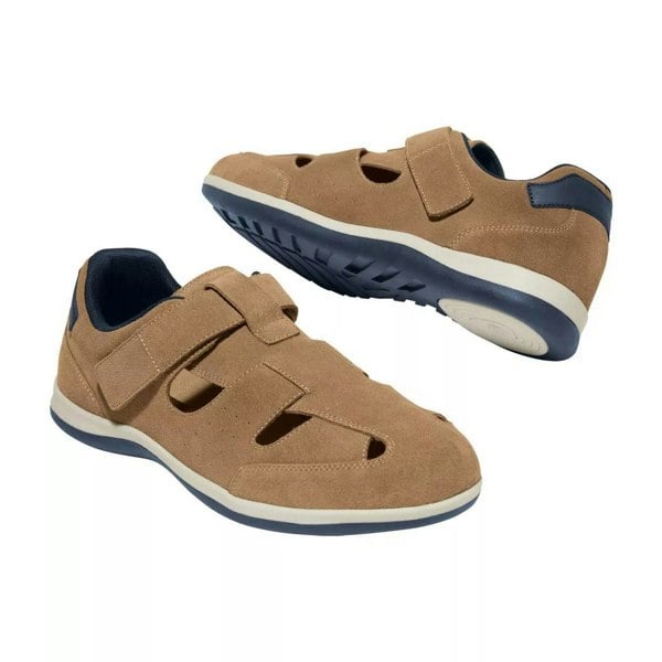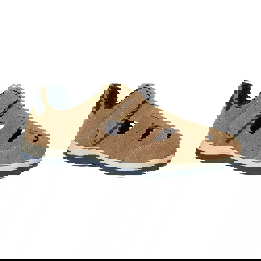 A round toe shape is paired with reinforced panels, perforation and a contrast heel. Underfoot, the two-tone TPR outsole has a gripped finish, and the hook and loop strap fastening keeps the style secure and easy to adjust.