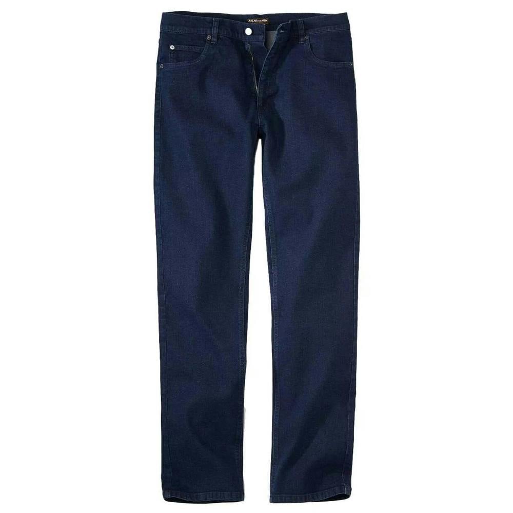 These men’s jeans are made from stretch denim in a plain dark blue finish. The fabric blend combines 98% cotton with 2% elastane, and the cut is regular with a flat waistline for a clean, classic look suited to everyday wear.