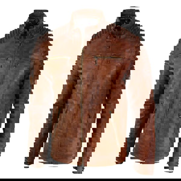 • Mens Real Leather Biker Style Jacket Tan Timber Brown Washed Jacket