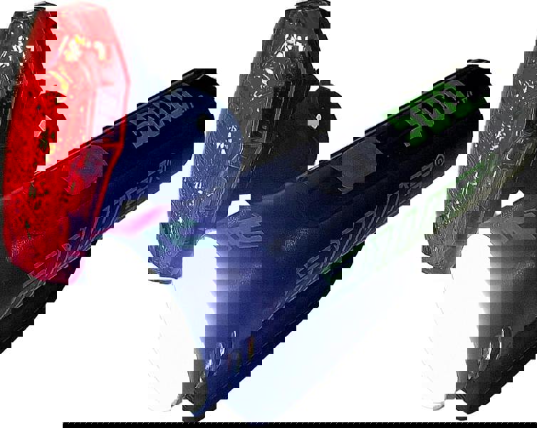MODES: There are 5 different functions for the front light which are constant mode 100% (run time 2 hrs), constant mode 50% (running time 4 hrs), flash mode (run time of 6. 5 hrs), *strobe mode (run time of 7 hrs) and shake flash mode 15% for 1. 5 seconds then to 100% and back to 15% (run time of 6. 5 hrs. The rear light has 3 functions which include constant (run time 36 hrs), strobe (run time 200 hrs*) and flashing (run time 100 hrs).