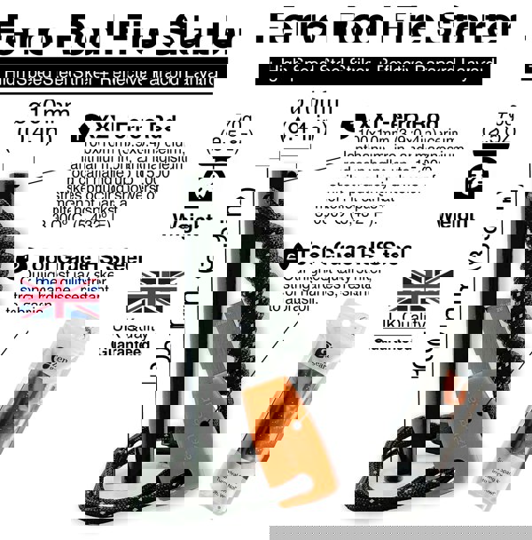 WEATHERPROOF FIRESTEEL - an all-inclusive carry on camping and bushcraft outdoor fire starter that consists of an XXL ferro rod, high-speed steel striker and paracord. Makes fire-lighting in all-weather conditions like a breeze. Ideal for campfires, fireplaces, barbecues, or as an emergency outdoor accessory.